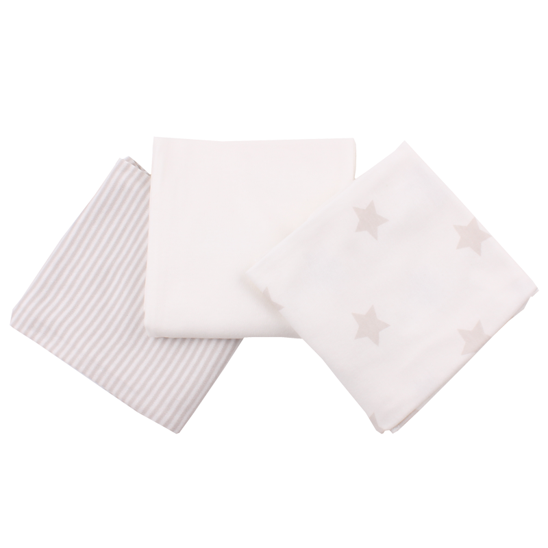 מארז שלישיית חיתולי בד, עשויים 100% כותנה איכותית מפנקת ונעימה למגע. למארז מצורף סיכה מעוצבת. מידות 60*60