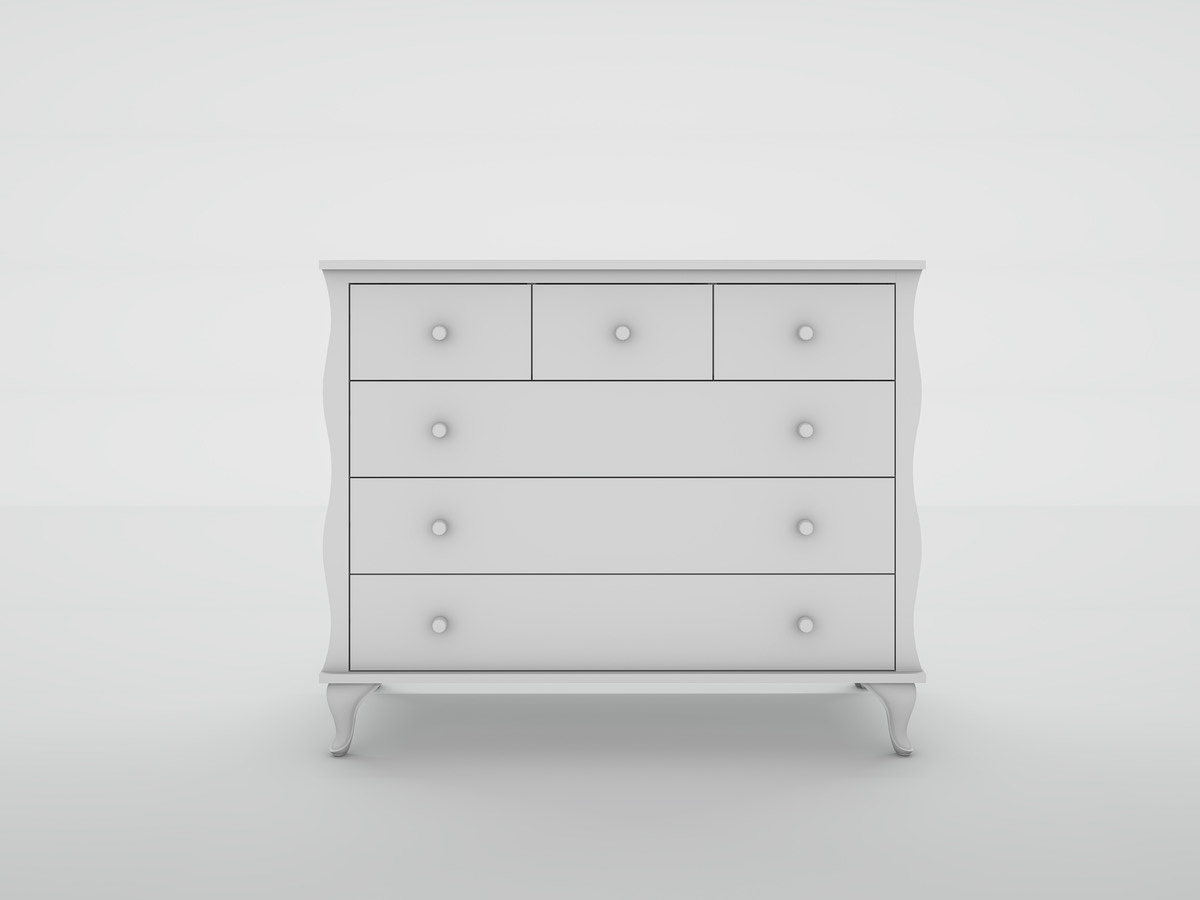 מגירה ראשונה מחולקת לשלוש ומתחתן שלוש מגירות רחבות במיוחד.