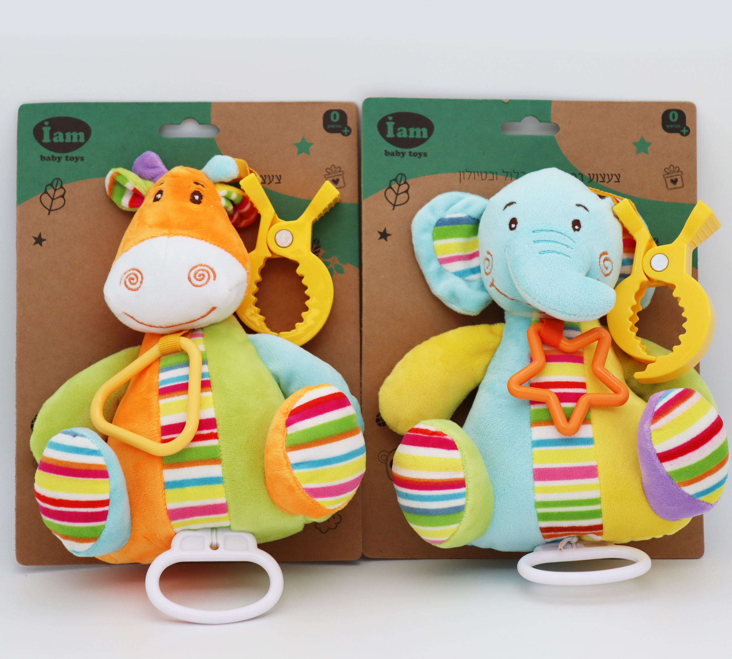 צעצוע רך בדמות חיות צבעוניות. עם קליפס תלייה לעגלה או ללול וטבעת משיכה להשמעת מנגינות נעימות. המשחק בצעצוע הרך מאפשר לתינוק התנסות ראשונית בהכרת מרקמים דרך מישוש ופיתוח קשר רגשי לבובה אהובה.