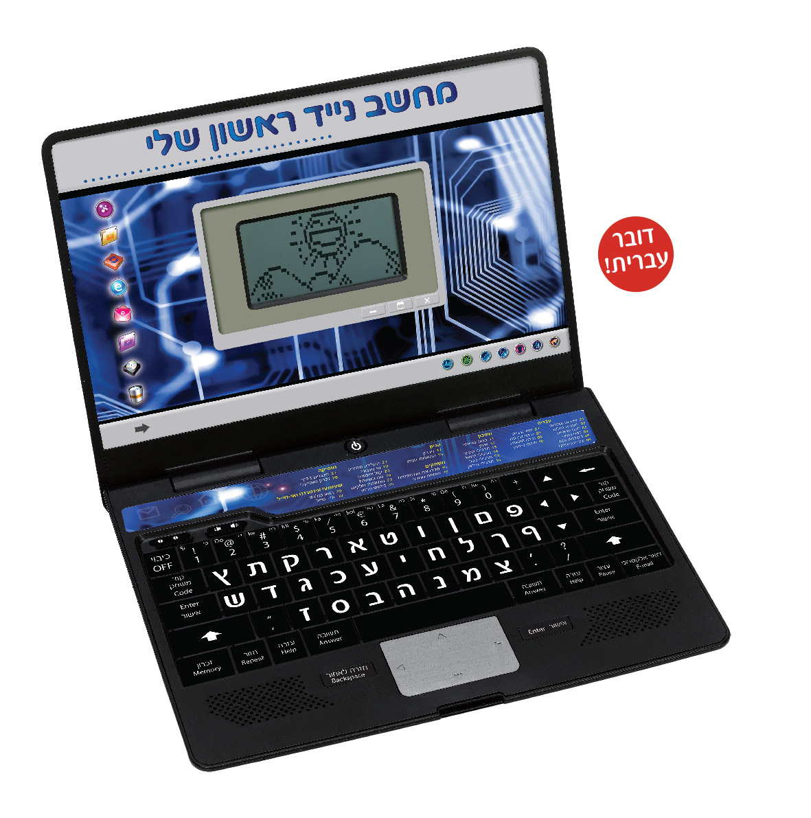 מחשב נייד אינטראקטיבי עם מסך lcd המציע 30 פעילויות לימודיות מאתגרות ומהנות | כולל חידות הגיון וזיכרון | פתרון בעיות חשבוניות | אתגרי איות והכרת השפה העברית | מוסיקה ומשחקים | דובר עברית | שלל פעילויות מאתגרות לימודיות ומרתקות | הקניית כלים בשפה העברית (זיהוי אותיות, העשרת אוצר מילים, איות, יחד-רבים, מילים נרדפות ועוד) | התנסויות חשבוניות ראשונות: הכרת צורות, ספירה, תרגילי חיבור, חיסור, כפל וחילוק | משחקים וחידות הגיון: התאמת זוגות, קול ותמונה, הכרת השעון ועוד | שעשועי מוסיקה ופיתוח השמיעה המוסיקלית | כולל סוללות | מגילאי 4 שנים ומעלה