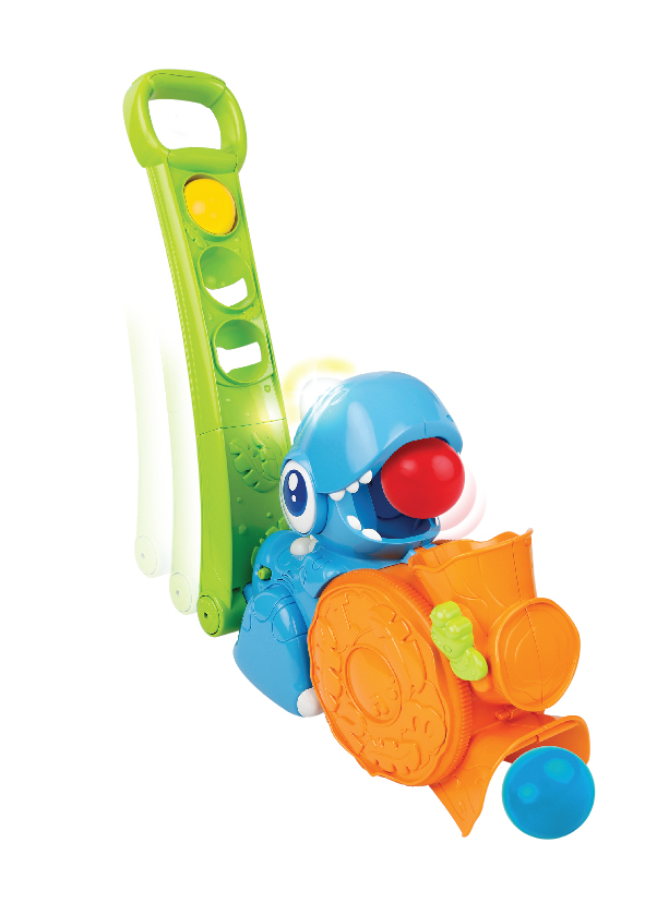 מעודד הליכה לתינוק בדמות קרוקודיל מתוק הינו צעצוע התפתחות המניע לפעולה ומעודד הבנה של פעולה ותוצאה . דינו מעודד הליכה מגן ומדליק אורות מהבהבים כאשר התינוק יוליך ההליון קדימה הכדורים וקפצו למעלה ודינו יפתח את פיו ויתפוס אותם . מגיע עם ידית לאחיזה קלה לתינוק המשמשת כמעמד לכדורים . מגיל 12 חודשיים +