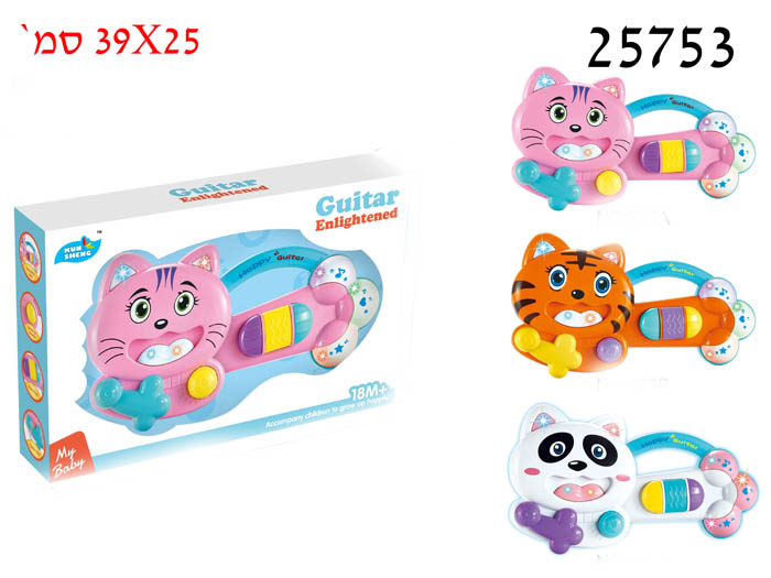 גיטרה בצורת חתול, עם מנגינות וצלילים עליזים ואורות להתפתחות הילד.