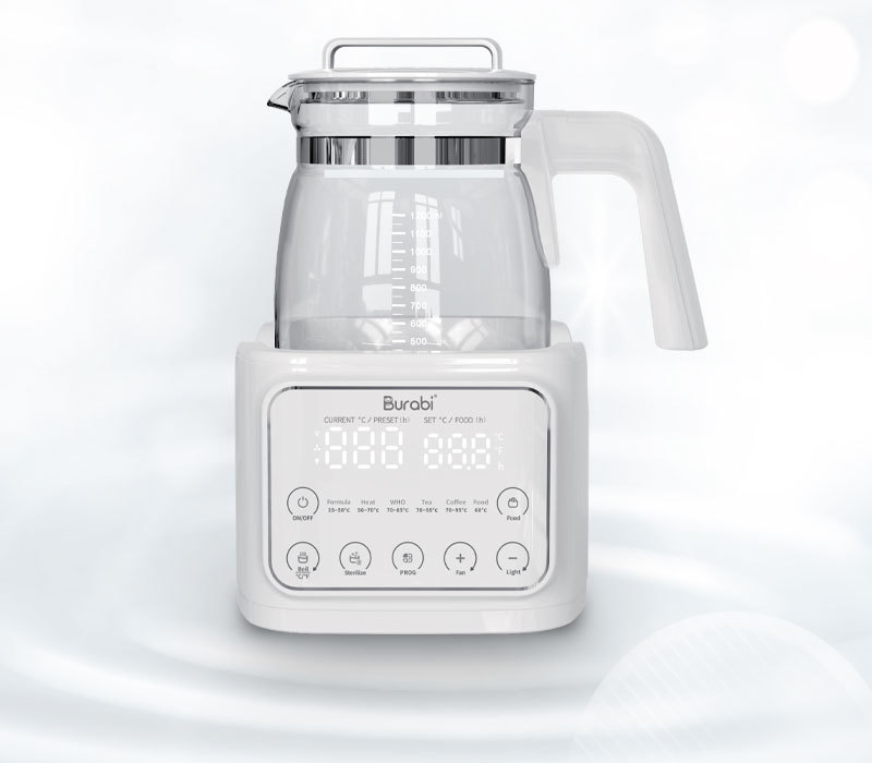 מכשיר מהפכני המרתיח מים, יורד בהדרגה לטמפרטורה הרצויה ושומר עליה לאורך כל היום—אידיאלי להכנת תרכובת מזון לתינוקות בצורה מהירה—כולל מסך מגע לבחירת תוכניות—המכשיר מצויד במערכת להסרת כלור והפקת מים נקיים—מיכל המים נשלף בקלות מתוך תא עגינה רחב עם חיבור אוניברסלי—מיכל המים עשוי מזכוכית לשמירה על איכות המים וצפייה בכמות מים שנותרה—בייבי נובה מאושר לשימוש על ידי ה-fda וגופים נוספים—תכולת מיכל המים: 1.2 ליטר