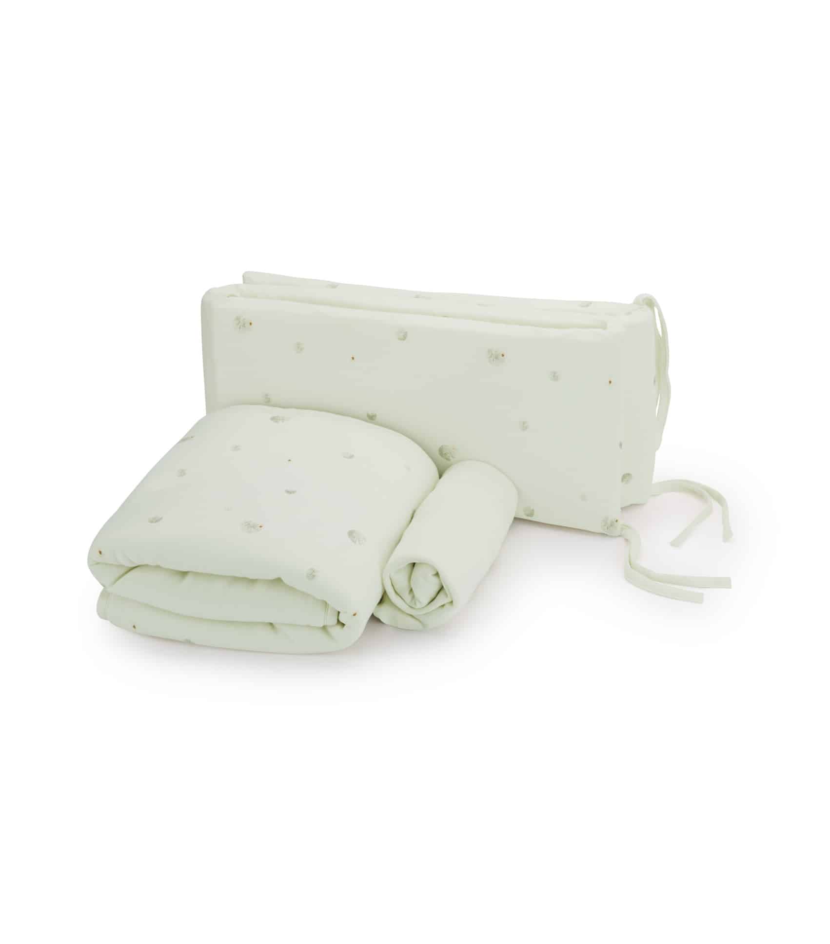 סט מצעים רך ומפנק במיוחד! הסט מכיל: סדין למיטת תינוק/מיטת מעבר- 135×80 ס”מ מגן ראש מתכבס – 192×25 ס”מ שמיכה גדולה רב עונתית – 105×85 ס”מ כיסוי מגן הראש ניתן להסרה ולכיבוס במכונת כביסה. אין לכבס את ספוג מגן הראש עשוי 100% כותנה