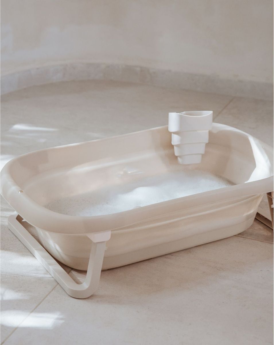אמבטיה מתקפלת לנוחות ויעילות במרחב הביתי ובטיולים. בזכות עיצובה הייחודי האמבטיה מתקפלת למצב שטוח וניתנת בקלות לאחסון ונשיאה. על ידי הנחת המזלף במקומו היעודי תוכלו להנות מידיים חופשיות בזמן השימוש. פקק האמבטיה מיוצר מחומר רך על מנת לשמור על נוחות תינוקך. בתחתית הרגליים יש נקודות מונעות החלקה לבטיחות ויציבות מירבית. בסוף השימוש תוכלו לתלות את האמבטיה לייבוש ואחסון באמצעות חור התליה. עיצובה הייחודי והמינימליסטי ישתלב בקלות בכל חלל. מידות: מצב מקופל: גובה 10 אורך 78 רוחב 48 מצב פתוח: גובה 21 אורך 78 רוחב 48. הכוס נמכרת בנפרד, התמונה להמחשה בלבד