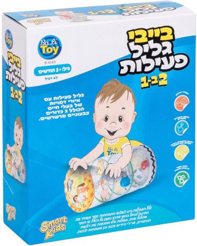 בייבי גליל פעילות 2 ב-1 – smart kids • גליל פעילות עם איורי דמויות של בעלי חיים הכולל 2 כדורים צבעוניים מרשרשים. • גליל הפעילות הינו צעצוע התפתחות אשר מעודד את התינוק לזחול בזמן שהוא נשען על הגליל או דוחף ומגלגל אותו, פעולות אלו מחזקות את רצועת הכתפיים, שרירי הידיים והגב וכן מפתחות יציבות. • פיתוח מיומנויות ראייה, שמיעה, מגע ותנועה. • לימוד הקשר בין פעולה לתוצאה. • מפתח כישורים מוטוריים. • מעודד זחילה. גיל: 3+ חודשים. מידות האריזה: רוחב: 19 ס”“מ אורך: 23 ס”“מ עומק: 7 ס”“מ”